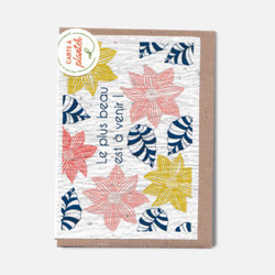 Un mélange délicat et coloré de fleurs de champs pour retrouver plaisir à recevoir des cartes. Fabriquées en France par Pascale Editions, ces cartes ensemencées sont écologiques grâce à une colle et un emballage à base de fécule de maïs. Tout est biodégradable et peut rejoindre vos végétaux dans votre compost !