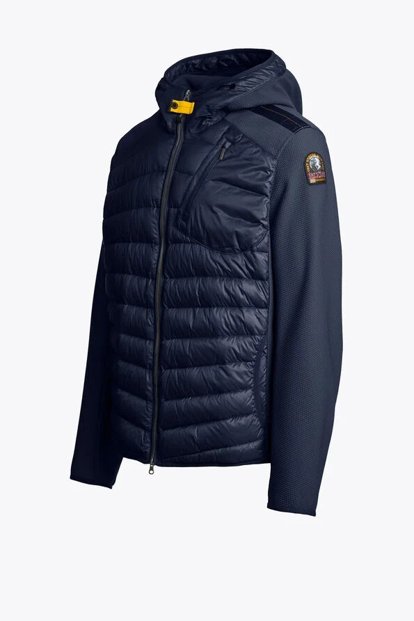 Nolan est un vêtement à capuche hybride, de la famille emblématique Warm Up, associant une maille nid d'abeille en polyester stretch et un taffetas de nylon semi-brillant garni de duvet. Sporty et polyvalent, il est disponible dans une large palette de couleurs.