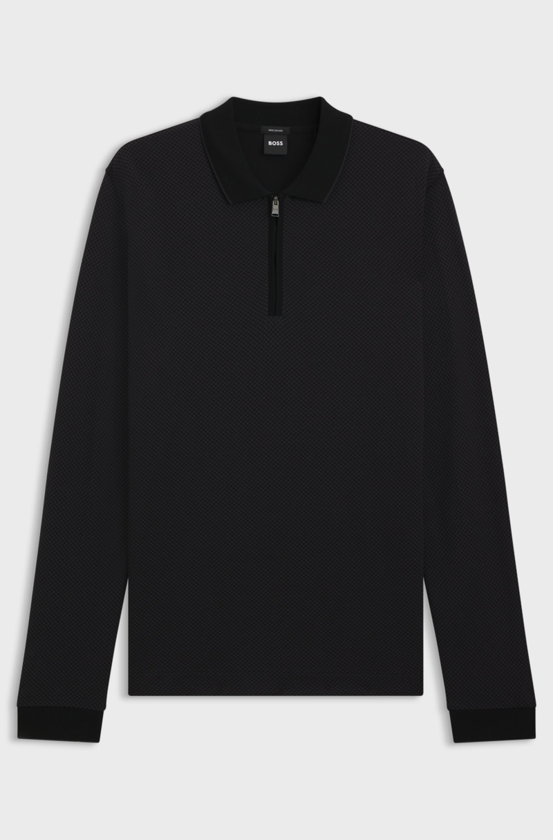 Confectionné en coton mercerisé très doux, ce polo BOSS Homme à la coupe classique présente une structure bicolore. Col, poignets et patte zippée unis.