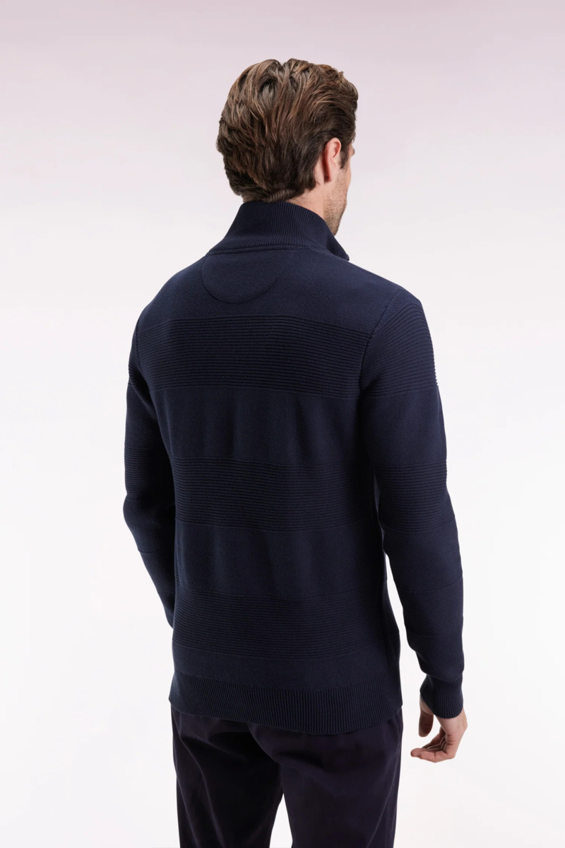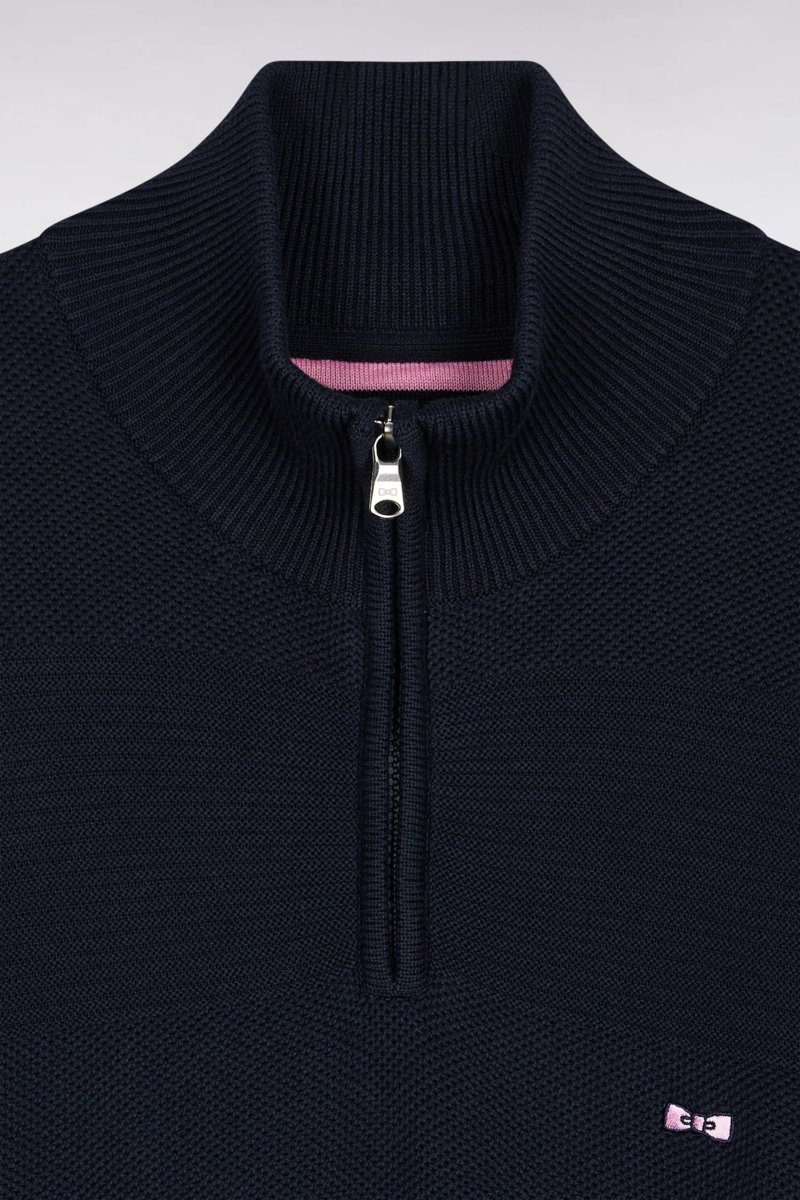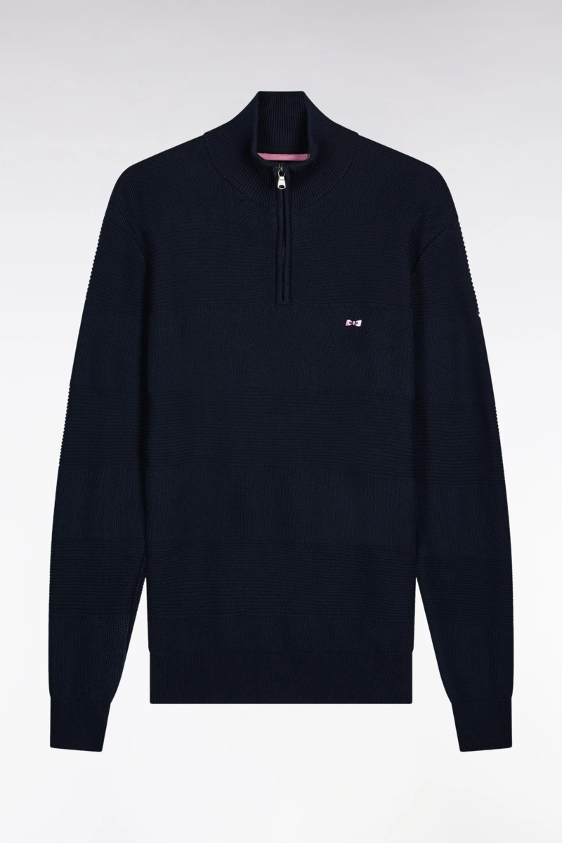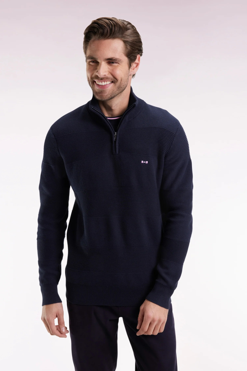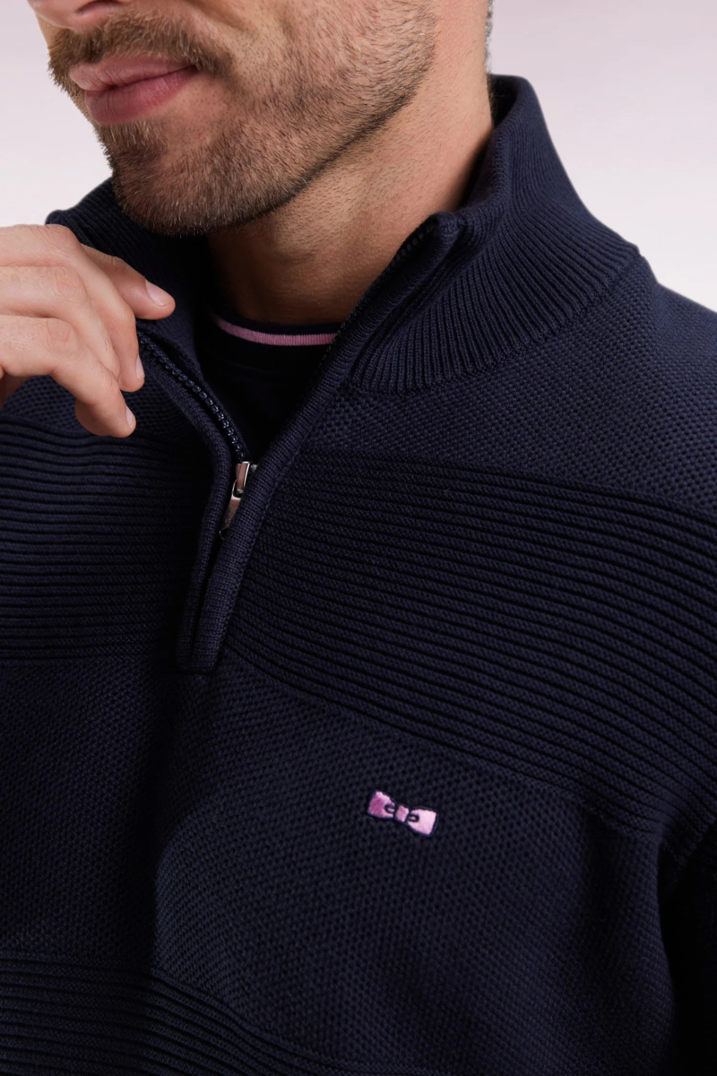 Fier de son héritage sportif, ce pull à camionneur zippé réalisé en pur coton présente un tricotage double tout en vous garantissant une sensation de confort durable. Son jeu de textures permet de recréer, en ton sur ton, les rayures emblématiques des maillots de rugby. Sa coupe droite confortable, son col montant zippé et sa broderie n½ud papillon rose sur la poitrine signent cette pièce à la fois graphique et intemporelle, parfaite pour conjuguer style et décontraction au quotidien.