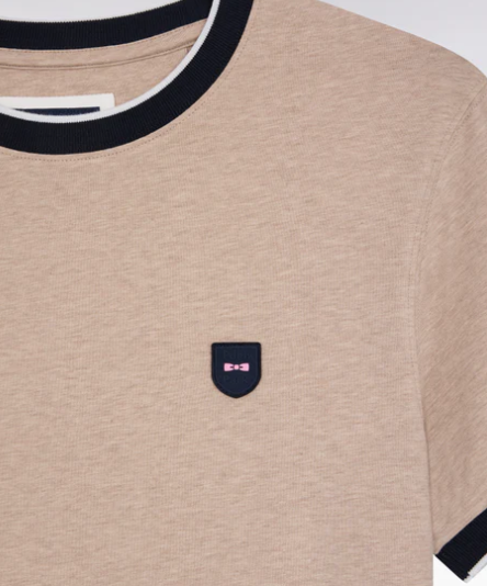 Ce T-shirt en jersey de coton stretch est rehaussé de fines rayures contrastés à même ses bords-côtes en bordure de col et de manches pour une touche graphique discrète. Un essentiel revisité avec subtilité dans une coupe slim ajusté à glisser dans tous les vestiaires.