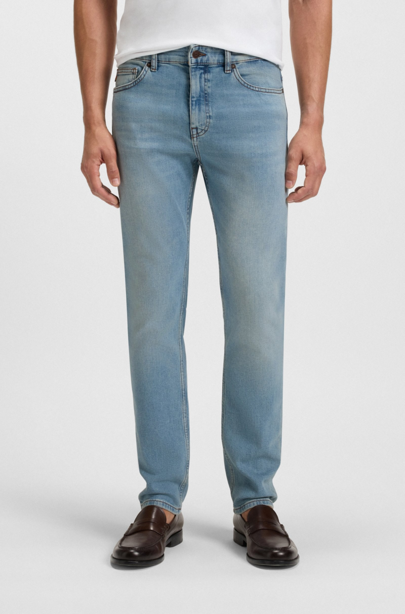 Affichant un ton bleu pur et des plis authentiques, ce jean BOSS Homme présente une coupe Slim. En denim stretch confortable. Finition monogrammée Double B. Cette pièce contient au moins 80 % de coton issu de l’agriculture régénératrice.