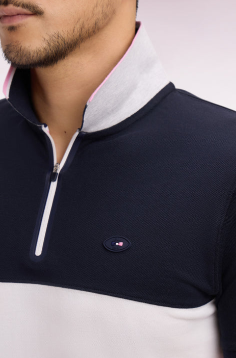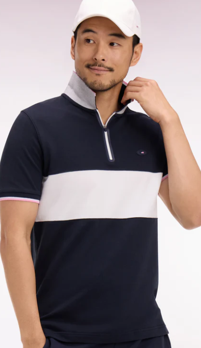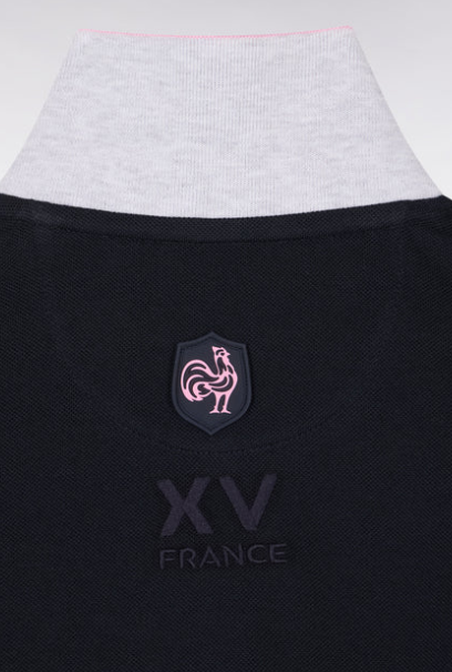 Craquez pour ce polo XV de France disponible en marine ou en blanc. Avec ses bordures de manches et de col tricolores marine, blanche et rose, son dessous de col chiné et sa large bande contrastée sur la poitrine, ce modèle allie élégance sport chic et dynamisme. Détail unique : ce polo ne s'agrémente pas d'une patte de boutonnage mais d'un zip soigné pour une allure plus urbaine.