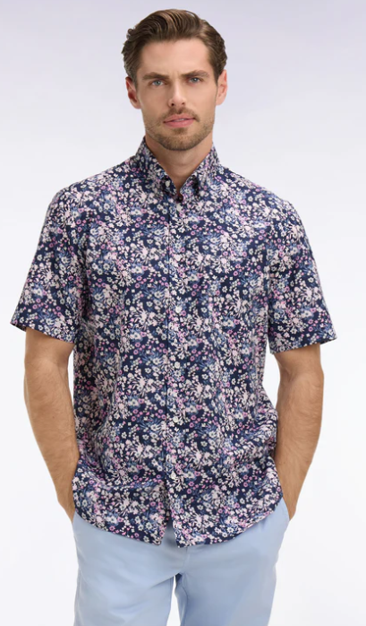 Élégante et originale, cette chemise homme à manches courtes dévoile un motif floral exclusif rose inspiré d'un jardin. Réalisée en popeline de coton légère, elle se distingue par ses finitions en chambray et sa poche poitrine brodée de notre emblème. Une pièce élégante et printanière au charme discret à associer à un jean ou un pantalon en lin.