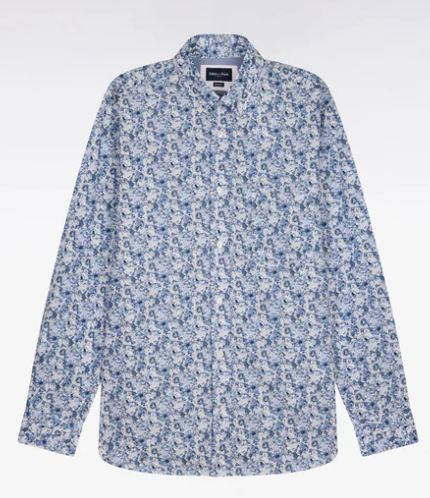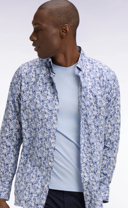 Cette chemise en popeline de coton associe un imprimé floral subtil à des détails chambray pour une allure moderne et raffinée. Sa coupe droite garantit un porté confortable, tandis que son col à pointes boutonnées lui apporte une note structurée, mettant parfaitement en valeur le port de tête. La poche poitrine soulignée de notre emblème brodé ajoute une touche identitaire chère à notre Maison. La légèreté de la popeline, alliée aux finitions soignées, en fait une pièce facile à porter du bureau aux moments plus décontractés.