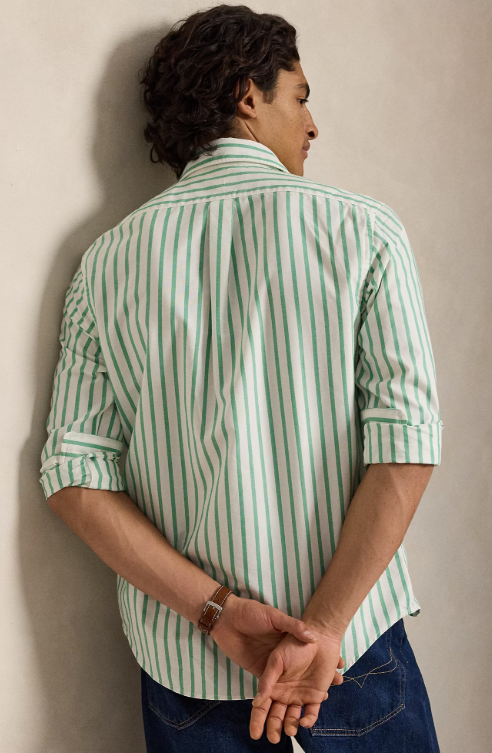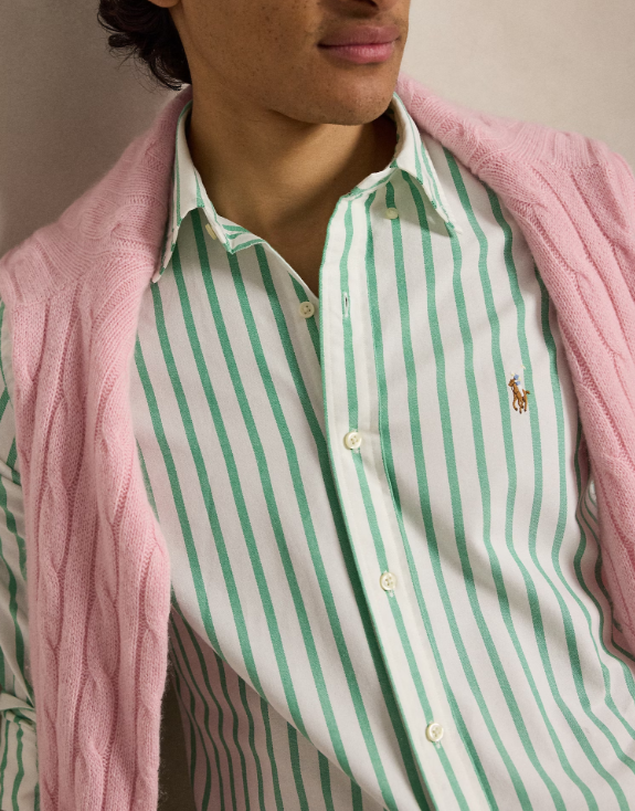 Cette chemise Oxford, l'un des premiers modèles de Ralph Lauren, est aujourd'hui devenue une pièce incontournable du look Polo. Notre tissu est créé à partir d'un délavé secret qui lui confère du caractère, une allure décontractée et la douceur d'un tissu chiné, ce que nous appelons l'« effet froissé » idéal. Sa formule est si unique qu'elle se trouve dans un coffre-fort depuis plus de trois décennies. M. Lauren ne cesse de décliner sa chemise emblématique, dont cette version rayée brodée de notre poney distinctif multicolore.