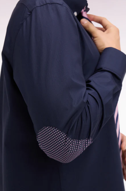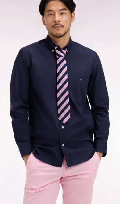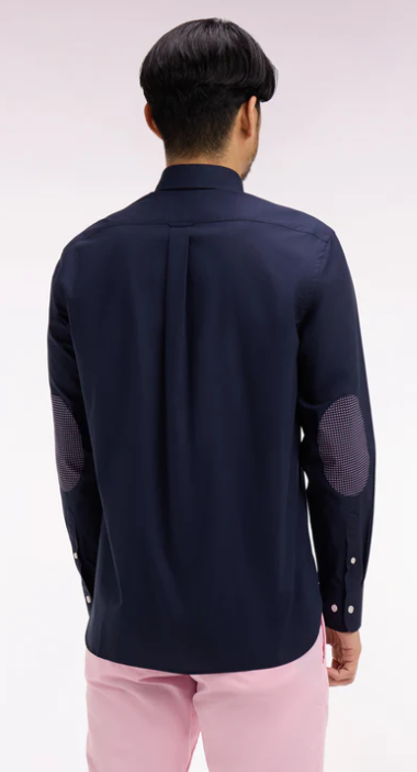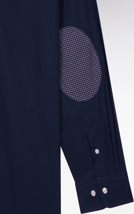 Cette chemise à manches longues en popeline de coton associe sobriété et détails soignés. Animée d’un micro motif discret sur ses coudières patchées, elle revisite un classique du vestiaire masculin avec une touche contemporaine typique de l'esprit French Flair Eden Park. Sa coupe droite et son col à pointes boutonnées assurent un porté confortable et polyvalent. La poche poitrine ornée du n½ud brodé signe l’identité Eden Park, tandis que le pli dos garantit une belle amplitude de mouvement. Déclinée en 2 coloris intemporels, cette chemise est une alliée idéale pour composer des silhouettes élégantes.