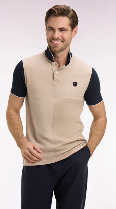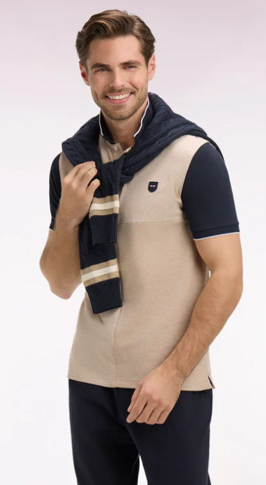 Ce polo homme subtilement un piqué de coton de qualité et un jersey de coton doux dans un jeu de découpes soigné. Ces éléments contrastés, manches marine et liseré contrasté pour parfaire ses finitions bords-côtes, structurent sa silhouette. Sa coupe regular droite et sa matière naturellement respirante offrent aisance et élégance décontractée. Une pièce sport-chic pensée pour le quotidien en beige, ciel ou gris clair à manches contrastées.