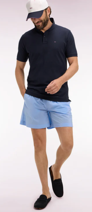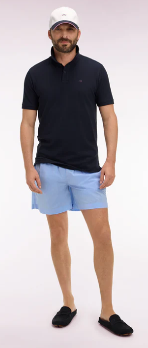 Notre maillot de bain pour homme décline l'allure sport-chic typique des collections Eden Park dans un vestiaire balnéaire construit autour d'une large palette de coloris. Sa ceinture élastiquée à intérieur contrasté et ses cordons tubulaires apportent confort, maintien et détail graphique. La broderie n½ud papillon discrète sur le bas de jambe signe ce short de bain complété par une poche arrière à rabat.