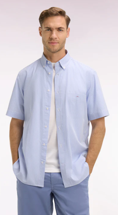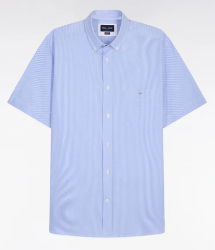 Confectionnée dans une popeline de coton douce et légère, cette chemisette à rayures bâtons, un symbole intemporel d'élégance masculine, est un essentiel de la saison. La popeline offre une tenue impeccable et une texture douce au toucher. Parfaite pour les journées estivales, cette chemise homme manches courtes conjugue allure classique et confort naturel, fidèle à l’esprit sport chic de la Maison.