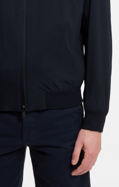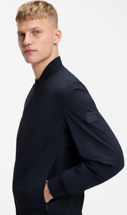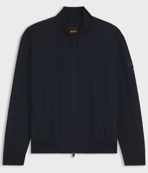 Avec son tricotage double couche et sa fermeture zippée, cette veste BOSS Homme offre un confort super-stretch. Coupe Regular. Détail badge logo. Poche intérieure.