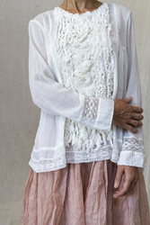 Magnifique robe sans manches en  organza de coton semi-transparent, grand col rond avec bordure en dentelle élastique pour le maintien, coupe trapèze avec deux grands volants dans le bas, petits ...